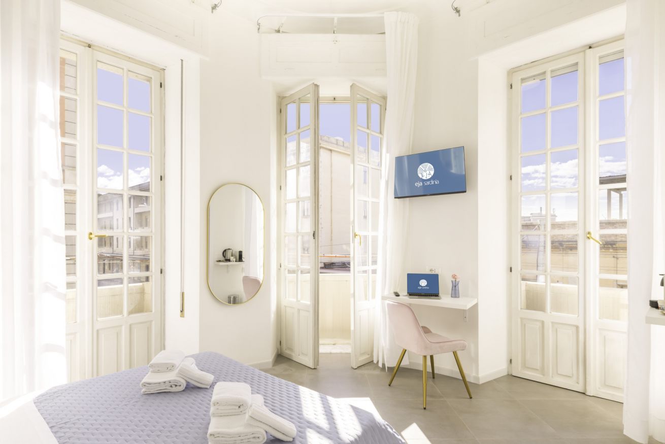 In Via Maddalena, 14 un ambiente elegante e confortevole, al primo piano di un palazzo con ascensore, questa camera offre una suggestiva vista su Via Roma e Via Maddalena, visibile attraverso le 3 porta-finestra che conducono a dei piccoli balconcini sulla città ideale per affacciarsi e godere del panorama urbano.