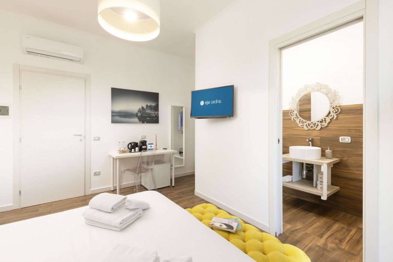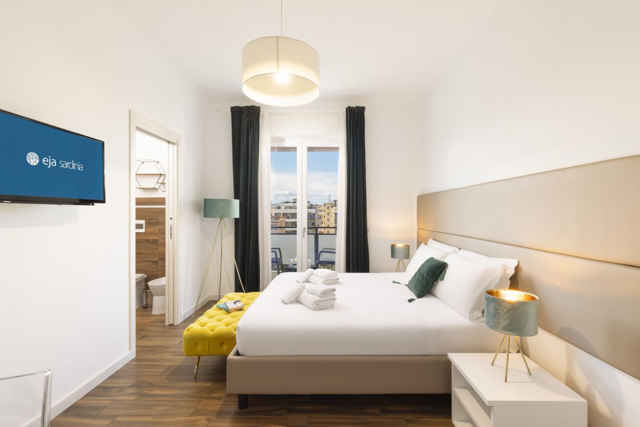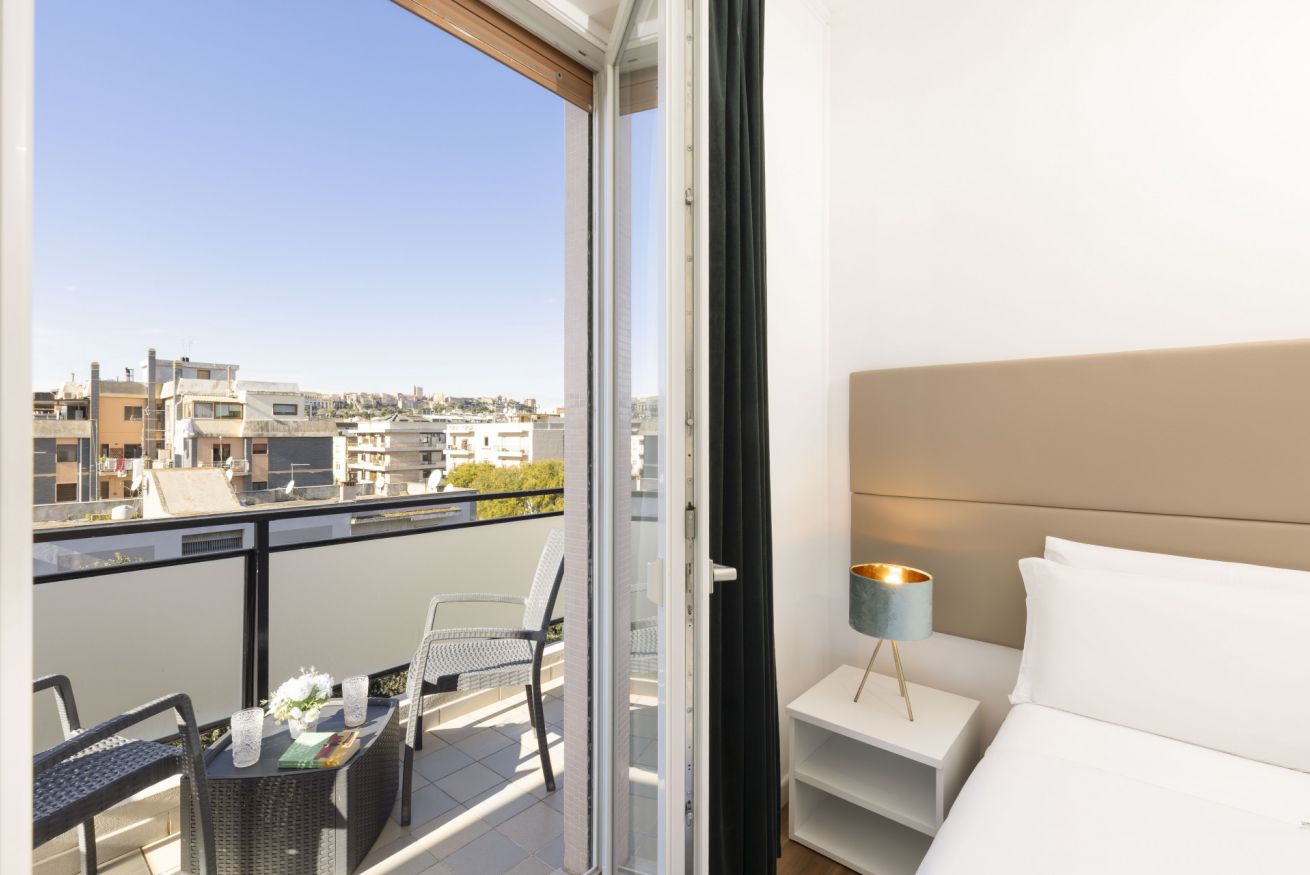 La camera è dotata di balcone con vista sulla città, bagno interno con ampia doccia e soffione a pioggia, set. di asciugamani e asciugacapelli, Kit Shampoo, Smart Tv che variano dai 32" ai 43" pollici, aria condizionata, wi-fi gratuito, mini frigo, bollitore e macchinetta del caffè.
