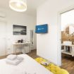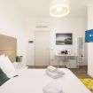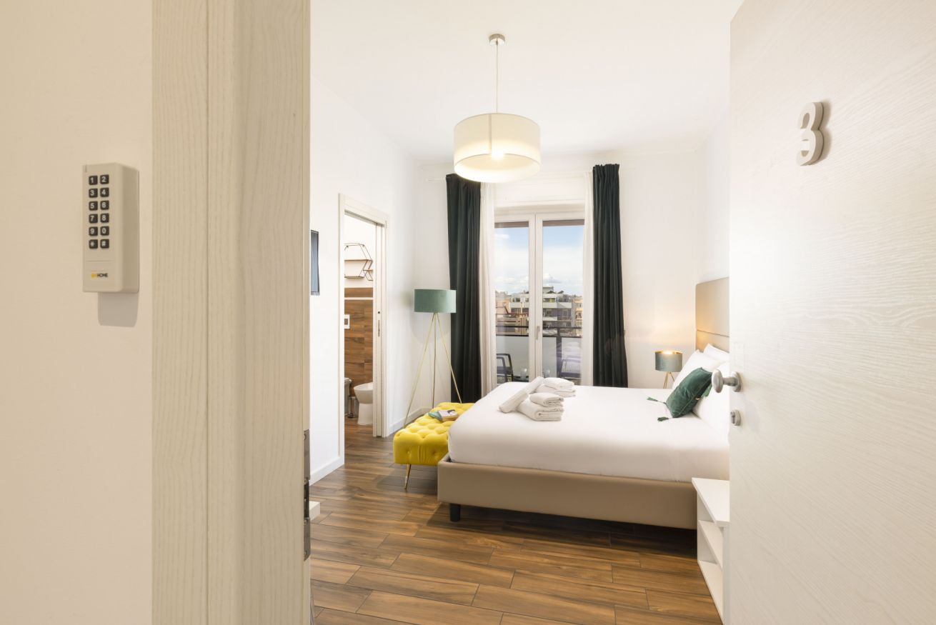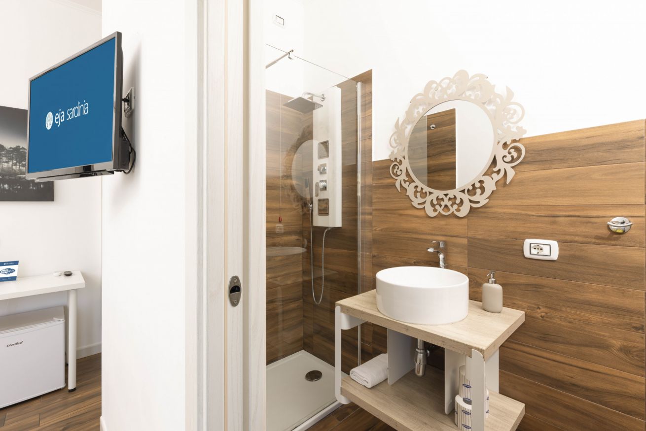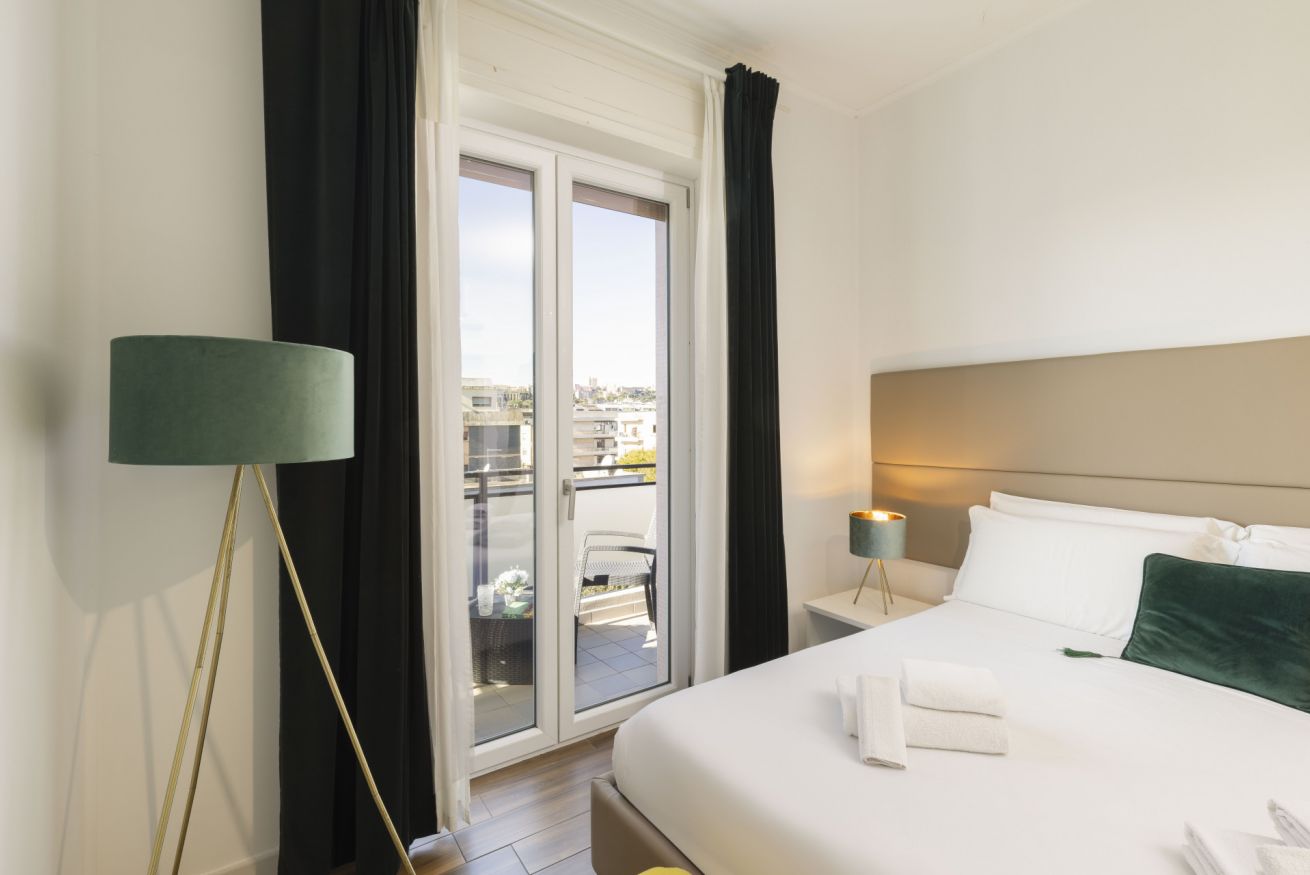 La camera è dotata di balcone con vista sulla città, bagno interno con ampia doccia e soffione a pioggia, set. di asciugamani e asciugacapelli, Kit Shampoo, Smart Tv che variano dai 32" ai 43" pollici, aria condizionata, wi-fi gratuito, mini frigo, bollitore e macchinetta del caffè.